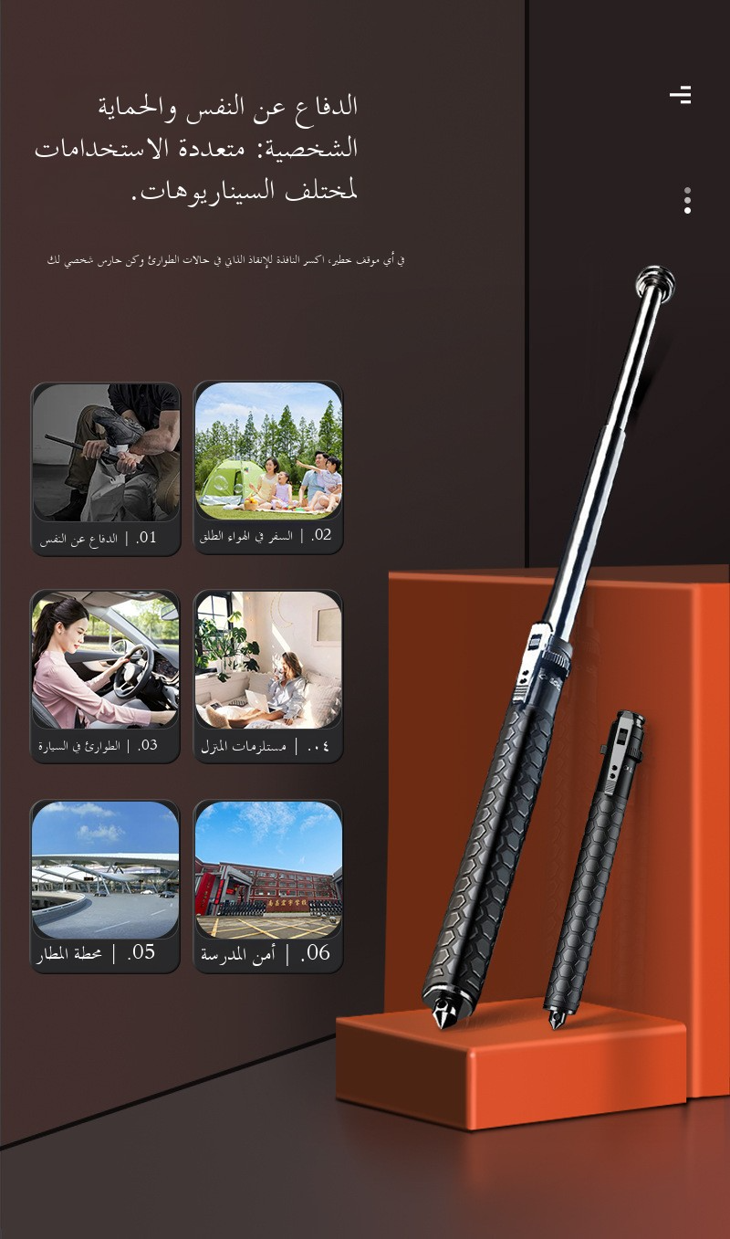 قبل 4 دقائق عصا تكتيكية تلسكوبية محمولة ثلاثية الأجزاء مزودة بنابض أوتوماتيكي وكسارة زجاج - عصا الدفاع عن النفس ثلاثية الأقسام
