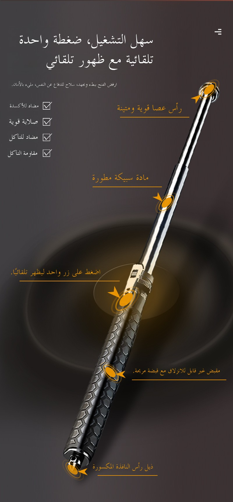 قبل 3 دقائقعصا تكتيكية تلسكوبية محمولة ثلاثية الأجزاء مزودة بنابض أوتوماتيكي وكسارة زجاج - عصا الدفاع عن النفس ثلاثية الأقسام